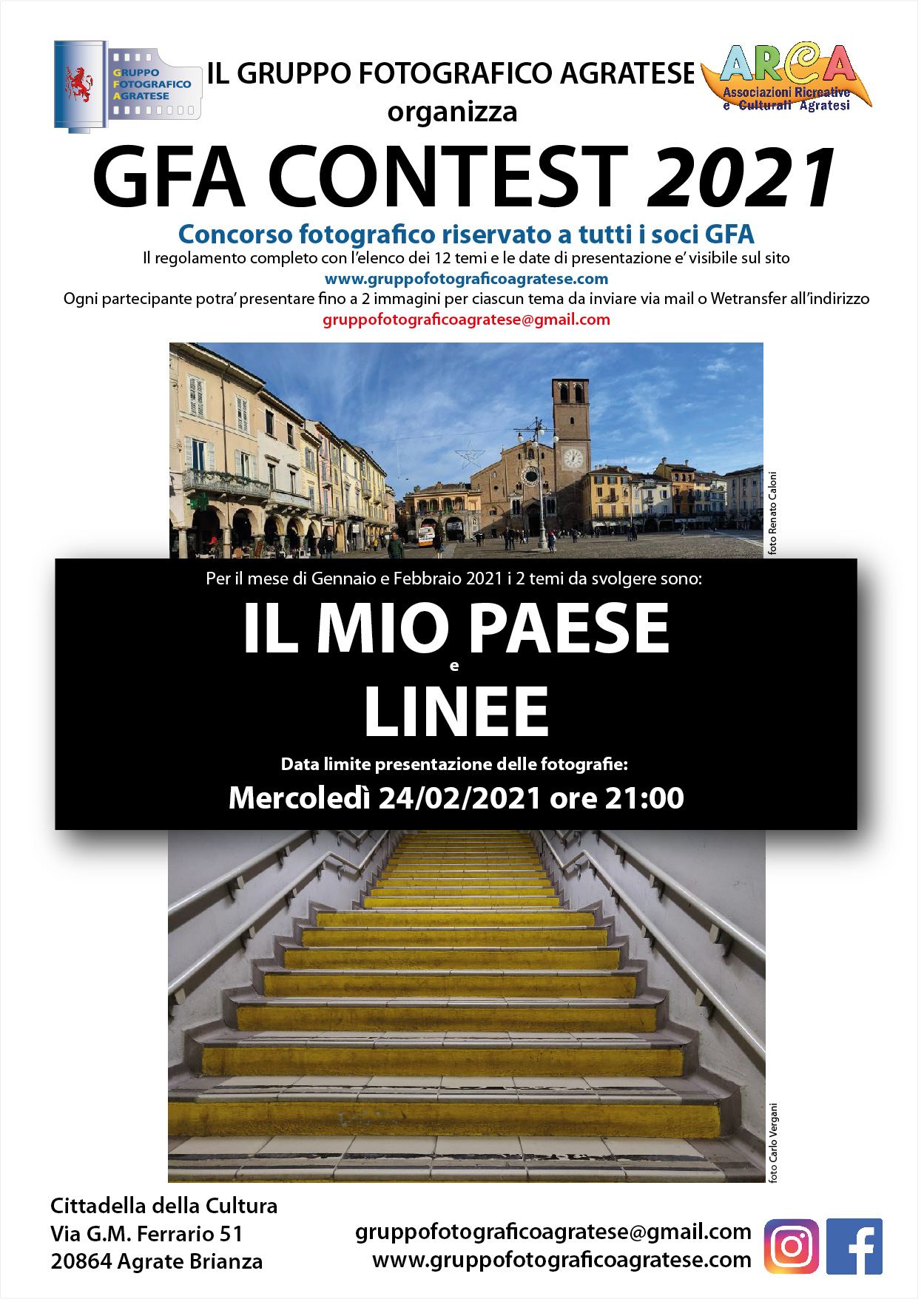 Contest Gennaio /Febbraio 2021 gruppofotograficoagratese / 27 gennaio 2021 La prima scadenza del contest 2021 e’ a Febbraio. I temi per le foto sono 2: “Il mio Paese” e “Linee” Condividi: Condividi su Facebook (Si apre in una nuova finestra) Facebook Email a link to a friend (Si apre in una nuova finestra) E-mail Stampa (Si apre in una nuova finestra) Stampa Mi piace Caricamento...
