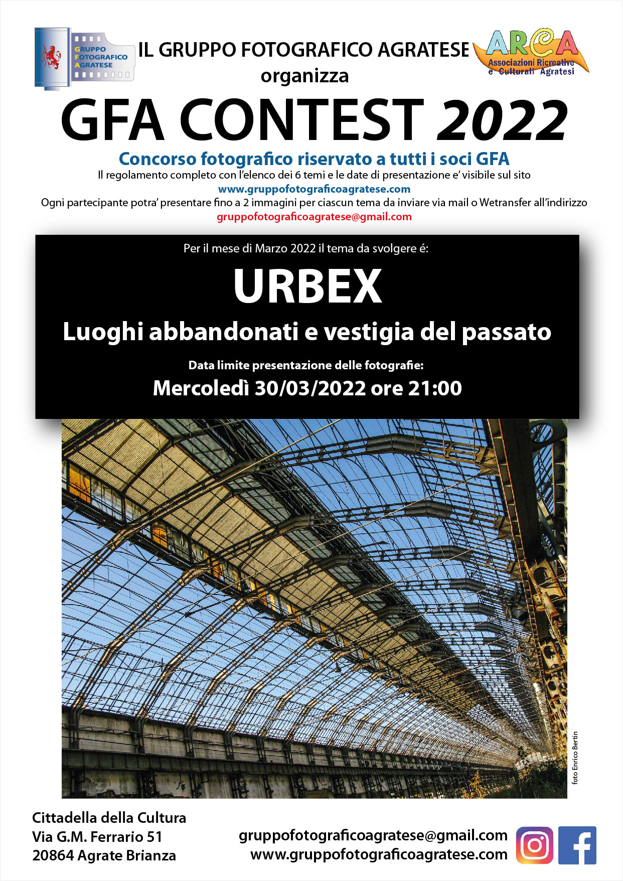 In attesa di sapere i nomi dei vincitori del contest del mese di Febbraio posiamo gia’ prepararci per quello di Marzo. Le foto vanno presentate entro mercoled¡ 30 Marzo ore 21.00 con le solite modalita’: invio dei files all’indirizzo mail del gruppo gruppofotograficoagratese@gmail.com o portando la chiavette usb con le foto la sera stessa.