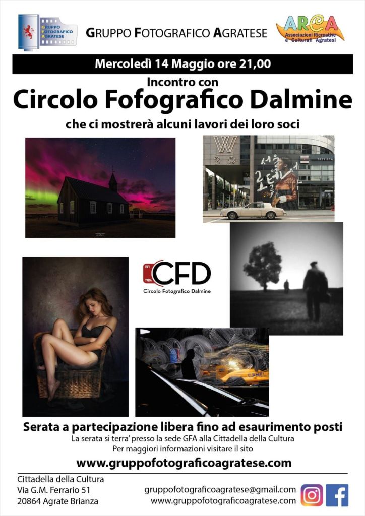 Incontro con il Circolo Dalmine gruppofotograficoagratese / 8 Maggio 2025 Condividi: Condividi su Facebook (Si apre in una nuova finestra) Facebook Email a link to a friend (Si apre in una nuova finestra) E-mail Stampa (Si apre in una nuova finestra) Stampa Mi piace Caricamento...