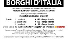 Come da tradizione il GFA organizza il concorso fotografico Citta’ di Agrate giunto alla XVIII° edizione. Il tema scelto quest’anno e’ Borghi d’Italia, semplice e intrigante a cui tutti possono partecipare. Premiazione e mostra ad inizio Ottobre in concomitanza con la festa di Agrate Brianza.